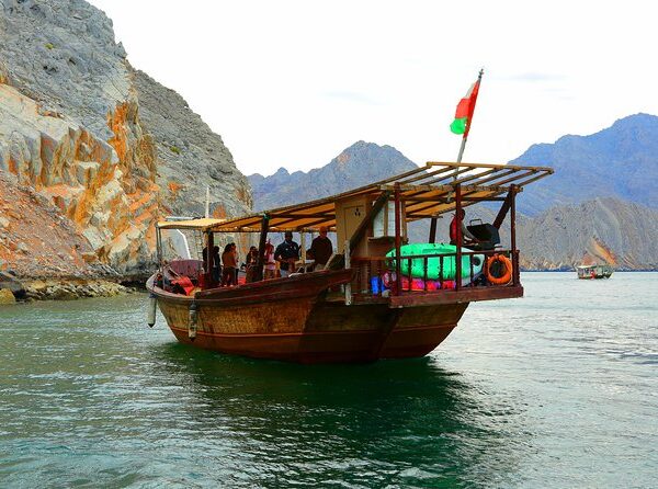 Embark on a mesmerizing full-day dhow cruise to the stunning Khor Sham Fjord, often called the “Norway of Arabia.” Glide across turquoise waters surrounded by towering cliffs, discover hidden bays, and enjoy a perfect blend of adventure and relaxation. This experience on a traditional Omani wooden dhow includes dolphin spotting, swimming, snorkeling, and visits to historic islands — with authentic Omani hospitality and delicious onboard meals. A must-do for families, couples, and adventure seekers.