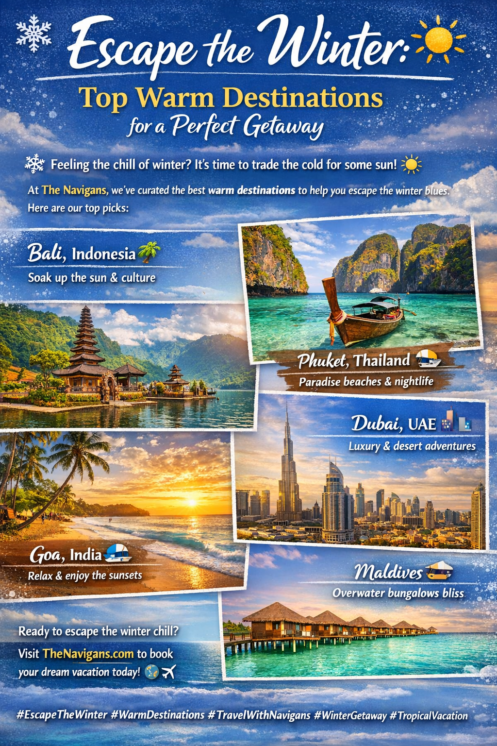 #EscapeTheWinter #WarmDestinations #TravelWithNavigans #WinterGetaway #TropicalVacation